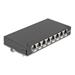This patch panel by Delock can be used as a junction box on the wall or in enclosures. Additionally, clips for DIN rail mounting are included. With its standardized dimensions, it is suitable for easy snap-in mounting of eight Keystone modul