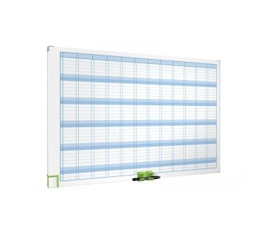 Magnetický povrch stíratelný za sucha Pomocné linie vykreslují 31 řádků a 12 sloupců plus indexový sloupec, umožňují plánovat akce pro každý den v roku Zvýrazněné soboty a neděle Integrovaná magnetická stěrka Magnetický držák na popisovač Lehká hliníková konstrukce Rozměr: 900x600x27 mm Dodává se včetně popisovače, 30 kusů magnetů a montážní sady |