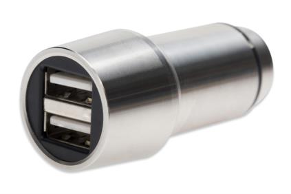 USB Car Charger, Unibody, Full Metal, 2x USB ports,2x 2.4A output (4.8A) silver w. life hammer function