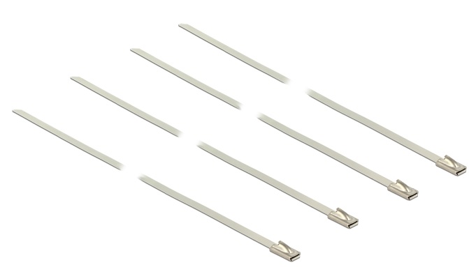 Tyto stahovací pásky od Delocku vyrobené z nerezové oceli mohou být použity pro prostorově úsporné svazování jednotlivých kabelů, vodičů a trubek.