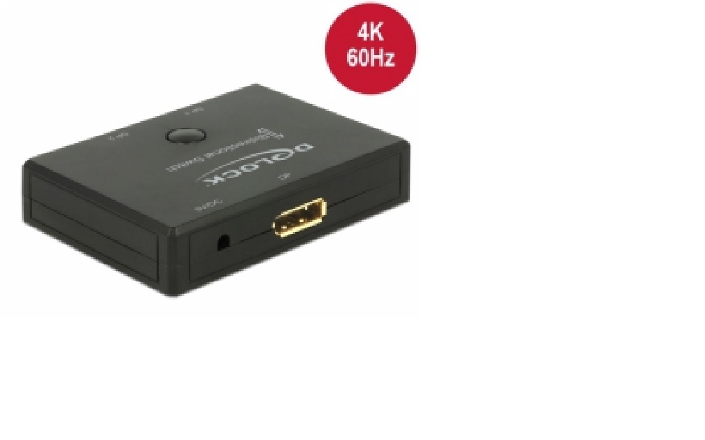 Tento DisplayPort switch od Delocku je manuální obousměrný switch pro připojení různých zařízení s portem DisplayPort. Tento switch nabízí dvě různé aplikace. 1. Až 2 zařízení lze připojit k monitoru, TV nebo projectoru. Stisknutím tlačítka lze vybrat zařízení, které se zobrazí na monitoru. 2. DisplayPort zařízení může být připojeno až ke 2 obrazovkám. Stisknutím daného tlačítka se zvolí obrazovka, na které se má signál zobrazit. Zobrazení signálu současně na více obrazovkách není možný. Poznámka Použitím 20 pinového kabelu Displayport na zdroji videa může být switch napájen. Specifikace • Konektor: Funkce 1 Vstup: 2 x DisplayPort 20 pinový samice 1 x DC 5 V jack 1,35 x 3,5 mm Výstup: 1 x DisplayPort 20 pinový samice Funkce 2 Vstup: 1 x DisplayPort 20 pinový samice 1 x DC 5 V jack 1,35 x 3,5 mm Výstup: 2 x DisplayPort 20 pinový samice • DisplayPort port – výběr tlačítkem • Rozlišení až 3840 x 2160 @ 60 Hz (v závislosti an systému a připojeném hardware) • Plastové pouzdro • Barva: černá • Rozměry (DxŠxV): cca. 82 x 62 x 17 mm Systémové požadavky • Volný port DisplayPort samice • DisplayPort kabel Obsah balení • Obousměrný switch • USB napájecí kabel, délka: cca. 1 m • Uživatelská příručka Balení • Kartonová krabice |
