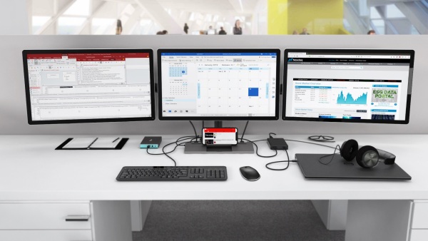 Kancelářská dokovací stanice USB-C, která podporuje až 2x externí monitor v rozlišení 4K. Stanice je kompatibilní s jakýmkoliv notebookem vybaveným portem USB-C nebo Thunderbolt 3. 6x USB port, spolehlivé a rychlé připojení do podnikové sítě díky integrovanému LAN portu a podpora instalace za monitor, to vše z této dokovací stanice dělá ideálního společníka pro profesionály. Samozřejmostí je podpora nabíjení vašeho notebooku či tabletu, a to až 100 W (napájecí adaptér je přiložen). Integrovaný nejnovější protokol DP 1.4 podporuje rovněž rozlišení 5K/60 Hz, což mohou ocenit i profesionální grafici, datoví analytici, filmoví editoři, případně milovníci videa ve vysokém rozlišení. K dokovací stanici je rovněž přiložen napájecí adaptér USB-C o celkovém výkonu 112 W (USB-C port: 100 W a 1x USB-A port o výkonu 12W) Pokud byste potřebovali připojit váš monitor prostřednictvím portu HDMI, můžete si zakoupit adaptér DP2HDMI4K60HZ (i-tec DisplayPort to HDMI Adapter), který vám zprostředkuje port HDMI v rozlišení až 4K a obnovovací frekvenci až 60 Hz. Poznámka: operační systém macOS nepodporuje technologii více obrazového video přenosu Multi Stream Transport (MST), což znamená, že v případě připojení k macOS bude na obou připojených monitorech promítnut stejný obraz. Připojte až dva externí monitory 4K/30Hz Power delivery: až 100 W (přiložen napájecí adaptér o celkovém výkonu 112 W) K dispozici jsou dva porty DisplayPort 3x USB 3.1, 1x USB-C 3.1 a 2x USB 2.0 vám umožní snadné připojení vašich USB zařízení a periferií. Gigabitový Ethernet RJ-45 poskytuje spolehlivé, robustní a vysokorychlostní internetové připojení s podporou 10/100/1000 Mbps rychlostí Kombinovaný jack pro audio a mikrofon na předním panelu Zámek Kensington zajistí ochranu proti zcizení, zejména v prostředí sdílených kanceláří či veřejně přístupných míst Vypínač dokovací stanice umožní maximální úsporu elektrické energie Dokovací stanice podporuje držák VESA pro inteligentní vertikální instalaci za monitor s VESA podporou Podporuje Windows 10, macOS X, Android, ChromeOS a Linux Specifikace DOKOVACÍ STANICE: 1x integrovaný USB-C kabel pro připojení k zařízení (100 cm) Technologie dokovací stanice: USB-C (MST) Power Delivery: 100 W Video Porty: 2x DisplayPort Rozlišení: DP 1.2 HBR2: 1 monitor – až 4K/30Hz 2 monitory – až 2x 1080p/60Hz* DP 1.4 HBR3: 1 monitor – až 4K/60Hz 2 monitory – až 2x 1440p/60Hz* DP 1.4 HBR3 DSC: 1 monitor – až 5K/60Hz 2 monitory – až 2x 4K/60Hz* 1x USB-C port Gen. 2 (pouze pro data) 1x USB-C port gen. 2 + PD (data + power delivery) 3x USB 3.0 port 2x USB 2.0 port 1x Ethernet GLAN RJ-45 port (Realtek RTL8153) 1x 3,5 mm Combo Audio port LED indikace Přepínač ON/OFF pro zapnutí a vypnutí dokovací stanice Podpora pro Kensington lock Podpora pro VESA uchycení OS: Windows 10, macOS, Android, Chrome OS a Linux s nejnovějšími aktualizacemi Rozměry produktu: 113 x 113 x 40 mm UNIVERZÁLNÍ NABÍJECÍ ADAPTÉR: Univerzální 112W USB-C napájecí adaptér pro napájení notebooků, tabletů, smartphonů a jiných zařízení s USB-C nabíjecím portem Vstupní napětí AC 100-240V, 50-60Hz, max. 2.3A Výstupní výkon (max.): 112 W Účinnost: více než 86% Výstupní napětí USB-C: DC 5V / 9V / 12V / 15V / 19V / 20V Výstupní proud USB-C: max. 5A Výstupní napětí USB-A: DC 5V Výstupní proud USB-A: max. 2.4A Ochrana proti: proudovému přetížení, přepětí, zkratu a přehřátí. Operační teploty: 0°C – 40°C Relativní vlhkost: 10% – 100% Rozměry balení: 375 x 175 x 120 mm Hmotnost balení: 599 g Hardwarové požadavky: Zařízení s volným USB-C nebo Thunderbolt 3 Požadavky pro funkci Power Delivery: Zařízení s volným USB-C či Thunderbolt 3 portem s podporou „Power Delivery“ Požadavky pro video výstup: Zařízení s volným USB-C portem s podporou “DisplayPort Alternate Mode” či portem Thunderbolt 3 Pro využití vyšších obnovovacích frekvencí než 60 Hz je zapotřebí monitor, který tyto obnovovací frekvence podporuje Operační systém: • Windows 10, macOS*, Android, Chrome OS a Linux s nejnovějšími aktualizacemi * Operační systém macOS nepodporuje technologii více-obrazového video přenosu Multi Stream Transport (MST), což znamená, že v případě připojení k macOS bude na obou připojených monitorech promítnut stejný obraz. Obsah balení Produkt Manuál Nabíjecí adaptér 112 W |