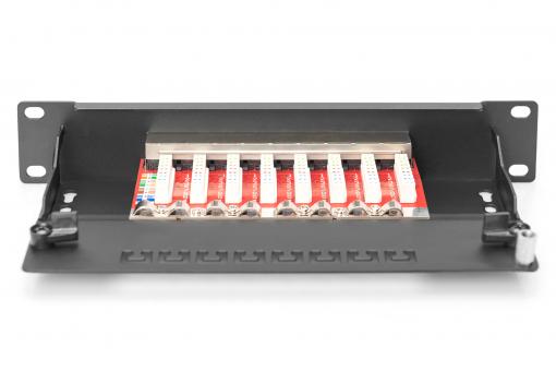Patch panel CAT 6A, stíněný, 8portový 1U, 10 "montáž do stojanu, černá RAL 9005