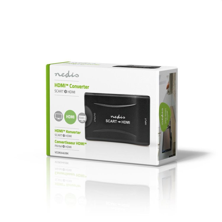 SCART Zásuvka | Výstup HDMI ™ | 1cestný | 1080p | 1.2 Gbps | ABS | Černá Tento převodník ze SCART na HDMI™ slouží k připojení (nadřazeného) zařízení se zástrčkou SCART k televizoru se vstupem HDMI™. Zejména starší zařízení mají výstup SCART. • Vhodné pro připojení zařízení s výstupem SCART k televizoru s HDMI™ • Převádí analogový videosignál SCART na digitální signál HDMI™ • Volicí přepínač rozlišení obrazu (720P nebo 1080P) • Synchronizuje videosignál a audiosignál, aby docházelo k minimálním prodlevám • Plug & Play: nejsou zapotřebí žádné ovladače ani instalace • Napájeno přes USB Specifikace produktu Šířka 88 mm Výška 25 mm Hloubka 58 mm Hmotnost 75 g Barva Černá Materiál ABS Směr přenosu dat 1cestný Typ balení Box Maximální rozlišení 1080p Podporovaná rozlišení 720p 1080p Vstupní proud 1.0 A Typ zdroje napájení Napájení z USB Vstupní napětí 5 V DC Vstupní napájecí konektor(y) USB Spotřeba elektrické energie v provozním režimu 5.0 W Poměr stran 16:9 Standardní rozlišení Full HD Zástrčka USB Typ zařízení Převodník HDMI ™ Výstupní konektor Výstup HDMI ™ Podporovaná technologie Full HD NTSC PAL SECAM Způsob ovládání Automatický Vstupní konektor SCART Zásuvka Taktovací frekvence 340 MHz Barevné formáty videa HDMI™ 24 bitů Deep Color 30 bit 36 bitů Maximální šířka pásma 1.2 Gbps Spotřeba energie v pohotovostním režimu 2.0 W Počet produktů v balení 1 kusů Podpora zvuku Ano |
