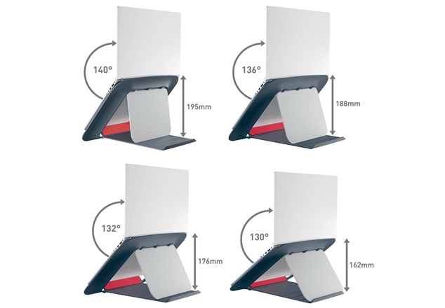 Stojan pod notebook Leitz Cosy Ergo zvedne monitor vašeho notebooku, zvýší tak pohodlí jeho sledování a pomůže zlepšit držení těla. Stojan zvedne notebook a usnadní cirkulaci vzduchu pro chlazení notebooku, přispívá se zvýšení výkonnosti akumulátoru a dalších komponent. Díky minimalistickému designu a matným barvám zlepší pohodu a dodá styl uspořádání vašeho pracovního místa.