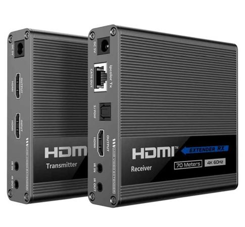 Toto zařízení HDMI Extender umožňuje distribuovat signál o vysokém rozlišení 4K@60Hz bez zpoždění až na 70 metrů na více přijímačů zapojených v kaskádě pomocí síťového kabelu CAT6 / 6A / 7. - 4K HDMI extender až do 70 metrů - Set zahrnuje vysílač a přijímač, které se propojí kvalitním kabelem Cat.6 / 6A / 7 - Podporuje Ultra High Definition rozlišení 4K@60Hz (2160p @ 60Hz), YUV 4:4:4 - Rozlišení videa: 480i@60Hz, 480p@60Hz, 576i@50Hz, 576p@50Hz, 720p@50/60Hz, 800x600, 1024x768, 1280x768, 1280x800, 1360x768, 1366x768, 1600x900, 1680x1050, 1080i@50/60H, 1080p@50/60Hz, 3840x2160@24/25/30/60Hz, 4096x2160@24/25Hz - Podporuje HDMI 2.0 a HDCP 2.2 - Podporuje ARC a oboustranné IR dálkové ovládání - Nulová latence, bez ztráty komprese, žádné zpoždění signálu - HDMI signál lze přenášet až do 70m přes kabel Cat.6 / 6A / 7; až 40 m na kabelu Cat.5E - Konektory na vysílači: HDMI vstup, HDMI výstup pro lokální monitor, konektor RJ45, napájecí konektor, 2x konektor IR - Konektory na přijímači: HDMI výstup, konektor RJ45, napájecí konektor, 2x konektor IR, S/PDIF výstup digitální audio - Ovládání zdroje HDMI signálu: ovládatelné přes IR passback z RX na TX - Přijímač podporuje audio výstup S/PDIF - Podporuje audio: LPCM/DTS-HD/DTS-Audio/Dolby Digital 5.1CH/Dolby TrueHD 7.1CH Audio, nepodporuje: DOLBY ATMOS a DOLBY VISION - Podporuje HDR (YUV4: 4: 4), maximální přenosovou rychlost 18 Gbps - Podporuje HDR a EDID pass-back (podporuje HDR10, ale nepodporuje HDR10+ a Dolby Vision) - Vysílač podporuje HDMI smyčku, vysílač má navíc HDMI výstup pro lokální monitor - Podporuje obousměrnou funkci IR passback (20-60 kHz) - Odolný proti bleskům, přepětí a antistatická ochrana - Kovové pouzdro, stabilní a trvanlivé - Podporuje HDMI 2.0 - Podporuje HDCP 2.2 - Velikost: Šířka: 106,36 mm, Hloubka: 98,73 mm, Výška: 26,19 mm - Váha TX:210g, RX:210g - Provozní teplota: 0 ~ 50°C - Skladovací teplota: -10 ~ 70°C - Relativní vlhkost: 0 ~ 90% (bez kondenzace) Obsah balení 1x vysílač 1x přijímač 2x 5V / 2A napájení 2x IR čidlo na kabelu 8x montážní konzole 18x šroub 1x uživatelská příručka |