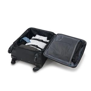 Protect your mobile equipment within the practically partitioned interior. The separate notebook case is kept save within the lockable front compartment which offers direct access for baggage screening. Furthermore the front compartment features slip pockets for passports, travel documents, power supply units and cables. An additional external zip pocket holds office and travel accessories. The generous main compartment with integrated TSA® lock provides plenty of space for clothing and toiletries. Make use of the fixation straps and inside pockets to organize your belongings. The Cabin Roller PRO is equipped with a built-in address tag and two handgrips on the long and on the short side which help to pull the case out of overhead compartments. All you need to travel without worries to every destination. Conforms to the IATA cabin recommendations Removable cushioned notebook case including padded compartment for tablets up to 12.9" Lockable front compartment offers direct access to notebook case for baggage screening Trolley belt to fixate notebook case on the trolley handle when travelling Integrated pocket to store power supply unit and cable Slip pocket for tickets and passport External zip pocket for travel accessories Generous main compartment with integrated TSA® lock Fixation straps and inside pockets for clothing, shoes, toiletries, etc. Four exceptionally easy-running and quiet wheels (360° rotatable) Robust, two-stage telescopic handle made from high quality aluminium Carry handles on the long and on the short side Built-in address tag Hard-wearing, water-repellent material and stain-resistant underside Color black Volume in liters 49 Material 1680D Polyester Max. Device Measurements (mm) 385 x 265 x 35 mm Product Measurements (mm) 400 x 550 x 230 mm Weight 3.9 kg Identifikační a kontaktní údaje výrobce DICOTA GmbH Fabrikstrasse 18 73277 Owen Germany Phone: +49 7021 72508 0 info@dct.group |