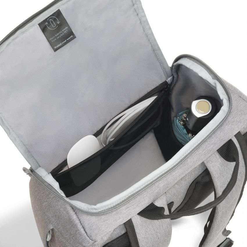 The Eco Backpack MOTION offers ideal protection for laptops between 13 and 15.6" thanks to its high-density foam (HDF) padding. The slip pocket provides reliable protection for tablets up to 12.9". The spacious main section is divided so that documents and accessories can be stored separately. There is space for your water bottle or umbrella in the mesh pockets inside of the bag. The front pocket has practical smaller compartments so you can organise smaller items like your smartphone, pens or chargers. The additional zipper on the side of the backpack provides quick access to the main compartment. You can therefore ensure that everything you need is always on hand. The backpack's ergonomic padding makes it comfortable to wear on your back and the padded shoulder straps can also be adjusted for further comfort. The bag is made of water-repellent material to protect the contents even on rainy days. The Eco Backpack MOTION is therefore perfect for you if you are always on the go and want to support the recycling of PET bottles with an eco-friendly bag. Made of 10.5 recycled PET bottles 23 litre storage space Padded notebook compartment with high density foam (HDF) Slip pocket for tablets up to 12.9" Spacious main section with compartments for documents and accessories Front pocket with storage space for mobile accessories Mesh pocket for water bottle or umbrella inside Quick access zipper on the side Ergonomic padded back Padded, adjustable shoulder straps Water-repellent material Color grey Material 600D RPET Polyester Max. Device Measurements (mm) 385 x 30 x 265 mm Product Measurements (mm) 325 x 475 x 150 mm Weight 0.75 kg Identifikační a kontaktní údaje výrobce DICOTA GmbH Fabrikstrasse 18 73277 Owen Germany Phone: +49 7021 72508 0 info@dct.group |