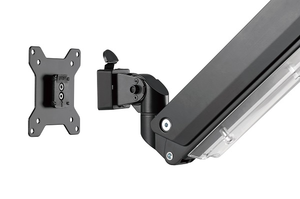 Stolní držák umožňuje individuální uspořádání monitorů od 35". Monitory lze otáčet, naklápět a natáčet. Integrovaná plynová pružina usnadňuje nastavení výšky. S funkcí rychlého uvolnění.