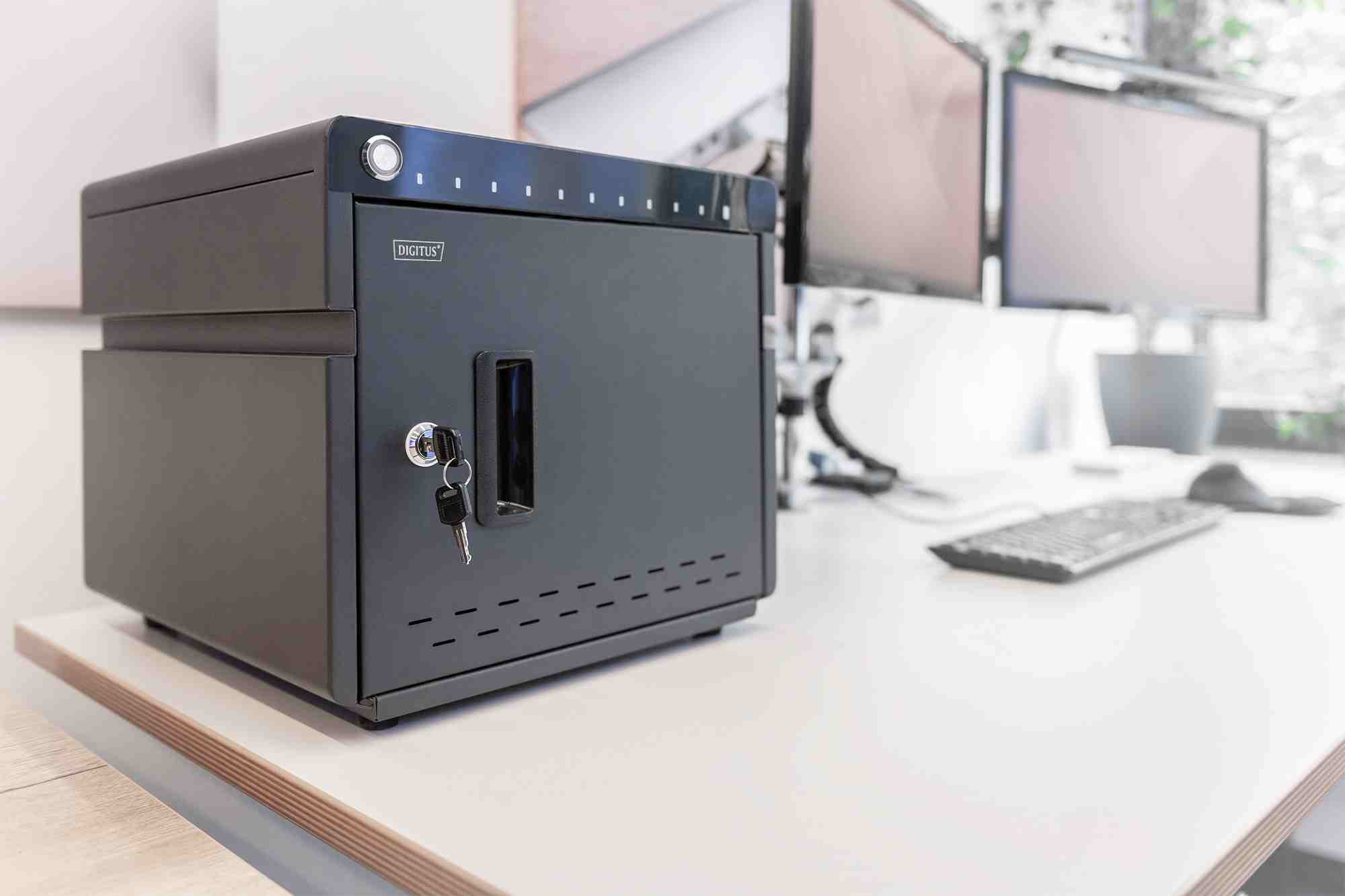 DIGITUS mobilní stolní nabíjecí skříňka pro tablety do 14 palců, 10 zařízení. UV-C, USB-C ( až 20W na zařízení)