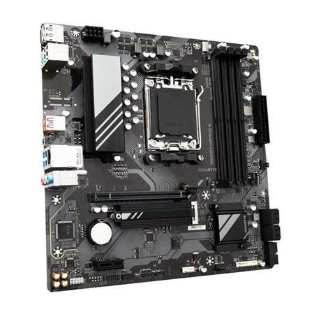 AMD Socket AM5, support for: AMD Ryzen™ 7000 Series Processors (Please refer "CPU Support List" for more information.) Chipset AMD A620 Memory Support for DDR5 6400(OC)/6200(OC)/6000(OC)/5600(OC)/5200/4800/4400 MT/s memory modules 4 x DDR5 DIMM sockets supporting up to 192 GB (48 GB single DIMM capacity) of system memory Dual channel memory architecture Support for non-ECC Un-buffered DIMM 1Rx8/2Rx8/1Rx16 memory modules Support for AMD EXtended Profiles for Overclocking (AMD EXPO™) and Extreme Memory Profile (XMP) memory modules (The CPU and memory configuration may affect the supported memory types, data rate (speed), and number of DRAM modules, please refer to "Memory Support List" for more information.) Onboard Graphics Integrated Graphics Processor: 1 x DisplayPort, supporting a maximum resolution of 3840x2160@144 Hz * Support for DisplayPort 1.4 version. 1 x HDMI port, supporting a maximum resolution of 4096x2160@60 Hz * Support for HDMI 2.1 version and HDCP 2.3. ** Support native HDMI 2.1 TMDS compatible ports. (Graphics specifications may vary depending on CPU support.) Audio Realtek® Audio CODEC High Definition Audio 2/4/5.1/7.1-channel * You can change the functionality of an audio jack using the audio software. To configure 7.1-channel audio, access the audio software for audio settings. LAN Realtek® GbE LAN chip (1 Gbps/100 Mbps) Expansion Slots CPU: 1 x PCI Express x16 slot, supporting PCIe 4.0 and running at x16 (PCIEX16) * For optimum performance, if only one PCI Express graphics card is to be installed, be sure to install it in the PCIEX16 slot. Chipset: 1 x PCI Express x1 slot, supporting PCIe 3.0 and running at x1 Storage Interface CPU: 1 x M.2 connector (Socket 3, M key, type 2580 PCIe 4.0 x4/x2 SSD support) Chipset: 4 x SATA 6Gb/s connectors RAID 0, RAID 1, and RAID 10 support for SATA storage devices USB CPU: 1 x USB 3.2 Gen 2 Type-A port (red) on the back panel 1 x USB Type-C® port on the back panel, with USB 3.2 Gen 1 support 1 x USB 3.2 Gen 1 port on the back panel Chipset: 1 x USB Type-C® port with USB 3.2 Gen 1 support, available through the internal USB header 3 x USB 3.2 Gen 1 ports (1 port on the back panel, 2 ports available through the internal USB header) 4 x USB 2.0/1.1 ports (2 ports on the back panel, 2 ports available through the internal USB header) Internal I/O Connectors 1 x 24-pin ATX main power connector 1 x 8-pin ATX 12V power connector 1 x CPU fan header 2 x system fan headers 1 x addressable LED strip header 1 x RGB LED strip header 1 x M.2 Socket 3 connector 4 x SATA 6Gb/s connectors 1 x front panel header 1 x front panel audio header 1 x USB Type-C® header, with USB 3.2 Gen 1 support 1 x USB 3.2 Gen 1 header 1 x USB 2.0/1.1 header 1 x Trusted Platform Module header (For the GC-TPM2.0 SPI/GC-TPM2.0 SPI 2.0 module only) 1 x Clear CMOS jumper Back Panel Connectors 1 x PS/2 keyboard/mouse port 1 x USB Type-C® port, with USB 3.2 Gen 1 support 1 x USB 3.2 Gen 2 Type-A port (red) 2 x USB 3.2 Gen 1 ports 2 x USB 2.0/1.1 ports 1 x HDMI port 1 x DisplayPort 1 x Q-Flash Plus button 1 x RJ-45 port 3 x audio jacks I/O Controller iTE® I/O Controller Chip H/W Monitoring Voltage detection Temperature detection Fan speed detection Water cooling flow rate detection Fan fail warning Fan speed control * Whether the fan speed control function is supported will depend on the fan you install. BIOS 1 x 256 Mbit flash Use of licensed AMI UEFI BIOS PnP 1.0a, DMI 2.7, WfM 2.0, SM BIOS 2.7, ACPI 5.0 Unique Features Support for GIGABYTE Control Center (GCC) * Available applications in GCC may vary by motherboard model. Supported functions of each application may also vary depending on motherboard specifications. Support for Q-Flash Support for Q-Flash Plus Bundled Software Norton® Internet Security (OEM version) LAN bandwidth management software Operating System Support for Windows 11 64-bit Support for Windows 10 64-bit Form Factor Micro ATX Form Factor; 24.4cm x 24.4cm |
