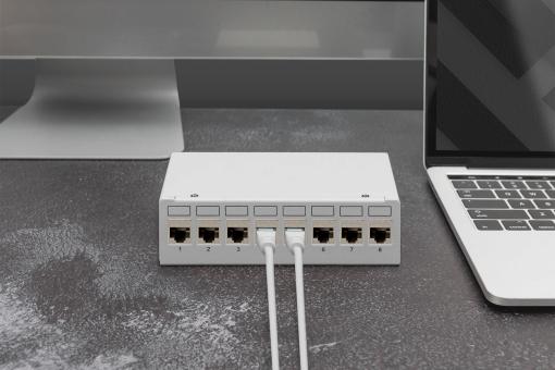 Modulární stolní patch panel, stíněný 8 portů, světle šedý