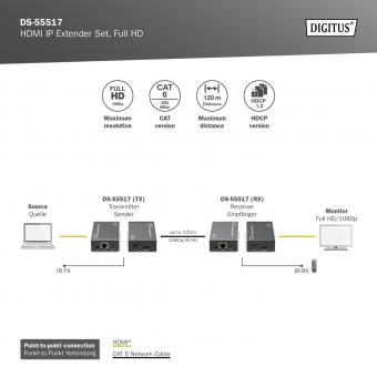 HDMI IP Video Extender Set, 120m Full HD, 1080p
