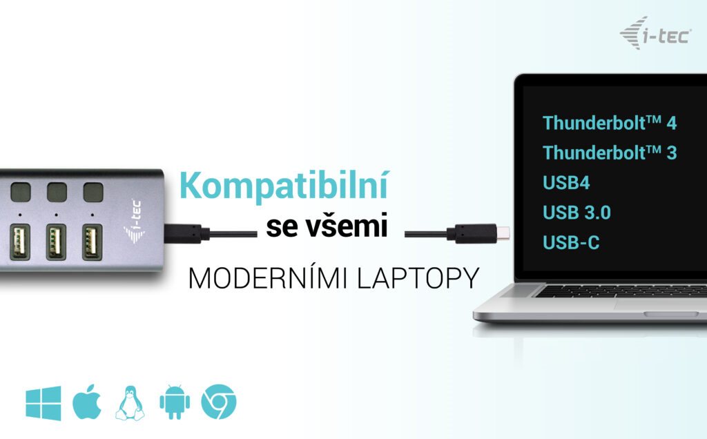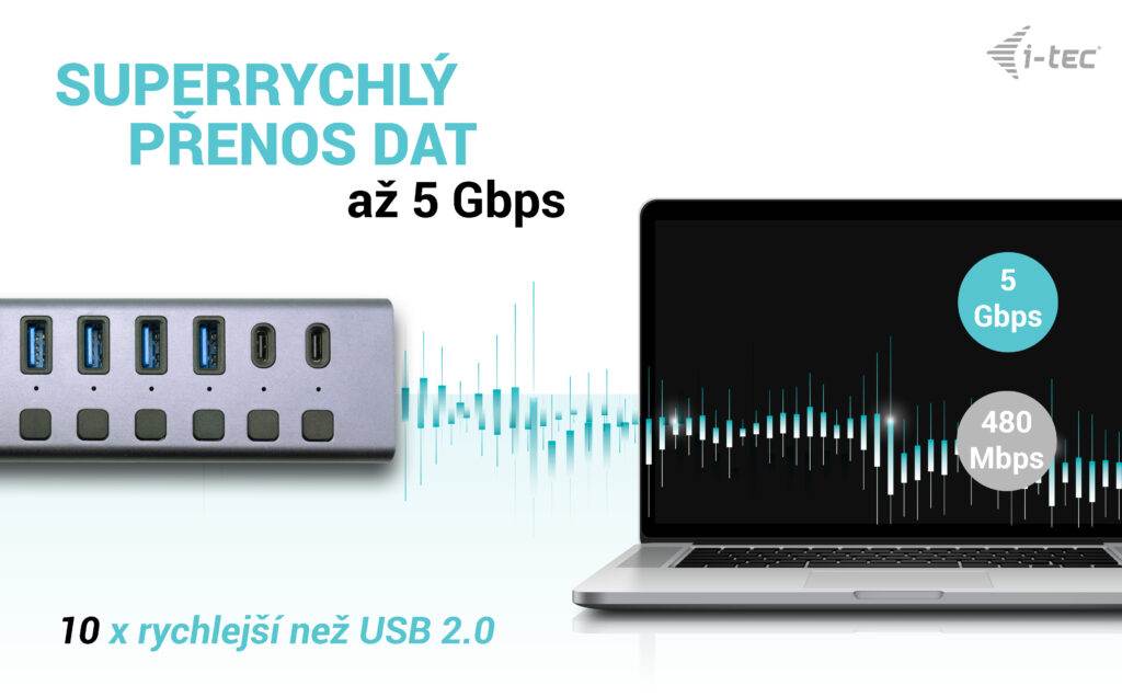 Popis Tento HUB nabízí celkem devět portů USB, z nichž všechny nabízejí rychlé nabíjení BC 1.2 (7,5 W). K dispozici jsou celkem 3 nabíjecí porty USB-A, dále 4 porty USB-A 3.2 Gen 1 (5 Gb/s) a 2 porty USB-C 3.2 Gen 1 (5 Gb/s). HUB tedy nabízí spoustu možností pro připojení příslušenství, a to jak pro kopírování a přenos dat, tak pro rychlé nabíjení. Každý port lze navíc samostatně zapínat a vypínat podle potřeby, aby se zvýšila přenosová rychlost a nabíjely porty, které necháte zapnuté. HUB je také vybaven portem LAN, který může pracovat rychlostí 10/100/1000 Mb/s, takže můžete pohodlně pracovat se spolehlivým a bezpečným připojením k internetu. HUB je vybaven přepěťovou ochranou, takže nehrozí poškození připojených zařízení vysokým napětím nebo proudem. Tento HUB samozřejmě nevyžaduje instalaci ovladačů. Stačí jej připojit kabelem USB k počítači a můžete jej začít ihned používat. Připojení je možné k nejširší možné škále počítačů, protože jej lze připojit jak k USB-A, tak k USB-C, USB4 a Thunderbolt. pecifikace 1x USB-C port pro připojení k zařízení 3x USB 2.0 port s podporou rychlého nabíjení 5V 2.4A (12W) (pouze nabíjení) 4x USB-A 3.2 Gen1 port (BC 1.2) 2x USB-C 3.2 Gen1 port (BC 1.2) 1x vstup pro napájení (DC 12 V/5 A) 1x Ethernet GLAN RJ-45 port Přepínač ON/OFF pro porty LED indikace USB datový kabel z typu C na A (100 cm) USB-C datový kabel (100 cm) Přepěťová a proudová ochrana OS: Windows 10/11, macOS, Linux, Chrome OS Rozměry produktu: 180 x 47 x 23 mm Hmotnost produktu: 152 g Rozměry balení: 191 x 120 x 60 mm Hmotnost balení: 465 g SYSTÉMOVÉ POŽADAVKY Hardwarové požadavky: Zařízení s volným portem USB-A, USB-C, USB4 nebo Thunderbolt™ 3/4. Operační systém: Windows 10/11, macOS, Linux, Chrome OS |
