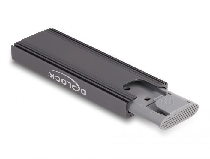 Tento kryt značky Delock umožňuje instalaci M.2 PCIe NVMe SSD nebo SATA M.2 SSD ve formátu 2280, 2260, 2242 a 2230. Lze jej připojit kabelem USB k PC nebo k notebooku. Robustní kovový kryt s chladicími lamelami zajišťuje optimální teplotu paměti. Kombo pouzdro Velkou výhodou tohoto krytu Delock M.2 je, že do pouzdra lze vložit jak disky SATA, tak i PCIe (NVMe) M.2 SSD. Paměť bude automaticky rozpoznána čipovou sadou a pak ji bude lze používat. Instalace SSD bez nástrojů Speciální funkcí tohoto pouzdra je, že k instalaci SSD M.2 není potřeba žádných nástrojů. Vnitřní díl lze vytáhnout stlačením tlačítka, načež bude SSD vložen do slotu a přitlačen gumovou spojkou k desce. Specifikace Konektor: externí: 1 x USB 10 Gbps USB Type-C™ samice interní: 1 x M.2 klíč M slot Chipset: Realtek RTL9210B Podporuje M.2 moduly ve formátu 2280, 2260, 2242 a 2230 s klíčem M nebo klíčem B+M na základě SATA nebo PCIe (NVMe) Maximální výška komponentů na modulu: 1,5 mm je podporována aplikace oboustraných modulů Podporuje NVM Express (NVMe) Možnost bootování Rychlost přenosu dat 10 Gbps LED indikující napájení a přístup Kovová skříňka Rozměry (DxŠxV): cca. 110 x 38 x 13 mm Hot Plug, Plug & Play Systémové požadavky Android 10.0 nebo vyšší Chrome OS Linux Kernel 5.11 nebo vyšší Mac OS 11.2.3 nebo vyšší Windows 10/10-64/11 iPad Air (4-mé generace) nebo vyšší iPad Pro (3-mé generace) nebo vyšší Surface Pro 7 PC nebo notebook s volným USB Type-C™ portem PC nebo notebook s volným portem Thunderbolt™ 3 Obsah balení • Externí pouzdro M.2 • Kabel USB-C™ samec na USB-C™ samec (s adaptérem na USB Typu-A samec), délka cca. 45 cm • 1 x tepelně vodivá podložka • 1 x tepelně vodivá destička • 2 x gumová špička • Uživatelská příručka Balení Kartonová krabice |