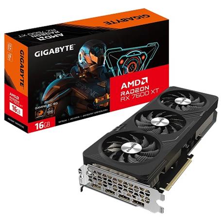 Powered by Radeon™ RX 7600 XT Integrated with 16GB GDDR6 128-bit memory interface WINDFORCE cooling system RGB Fusion Protection metal back plate Boost Clock* : up to 2810 MHz (Reference card: 2755 MHz) Game Clock* : up to 2539 MHz (Reference card: 2470 MHz) WINDFORCE COOLING SYSTEM The WINDFORCE cooling system features three 80mm unique blade fans, alternate spinning, 5 composite copper heat pipes directly touch the GPU, 3D active fan and Screen cooling, which together provide high efficiency heat dissipation. ALTERNATE SPINNING Reduce the turbulence of adjacent fans and increase airflow pressure. 3D ACTIVE FAN The 3D Active Fan provides semi-passive cooling, and the fans will remain off when the GPU is in a low load or low power game. UNIQUE BLADE FAN The airflow is spilt by the triangular fan edge, and guided smoothly through the 3D stripe curve on the fan surface. GRAPHENE NANO LUBRICANT Graphene nano lubricant can extend the life of sleeve bearing fan by 2.1 times, close to the life of double ball bearing, and is quieter. The shape of the copper heat pipe maximizes the direct contact area with the GPU. The heat pipe also covers the VRAM through a metal plate contact to ensure proper cooling. SCREEN COOLING Extended heatsink allows air to pass through, providing better heat dissipation. RGB FUSION With 16.7M customizable color options and numerous lighting effects, you can choose any lighting effect or synchronize with other devices in GIGABYTE CONTROL CENTER. ULTRA DURABLE Ultra Durable certified highest-grade metal chokes, lower ESR solid capacitors, 2oz copper PCB, and lower RDS(on) MOSFETs, plus over-temperature design to deliver superior performance and longer system life. FRIENDLY PCB DESIGN Fully automated production process ensures top quality of the circuit boards and eliminates sharp protrusions of the solder connectors seen on the conventional PCB surface. This friendly design prevents your hands from getting cut or inadvertently damaging components when making your build. Power Through The Game GIGABYTE offers the best power supply solutions for your graphics cards. You can choose either the AORUS series or the UD series to power your graphics card. Specifikace Grafika Radeon™ RX 7600 XT Takt jádra Boost Clock* : up to 2810 MHz (Reference card: 2755 MHz) Game Clock* : up to 2539 MHz (Reference card: 2470 MHz) Streamovacích procesorů 2048 Takt paměti 18 Gbps Kapacita paměti 16 GB Typ paměti GDDR6 Paměťová sběrnice 128 bit Sběrnice karty PCI-E 4.0 Maximální rozlišení digitálního výstupu 7680x4320 Monitorů současně 4 Velikost karty L=281.4 W=116.6 H=52.6 mm Formát PCB ATX DirectX 12 Ultimate OpenGL 4.6 Doporučený výkon napájecího zdroje 600W Napájecí konektory 8 Pin*2 Výstup DisplayPort 2.1 *2 HDMI 2.1a *2 Příslušenství Quick guide |