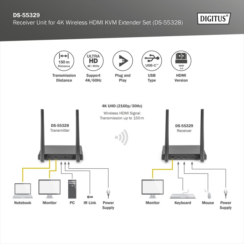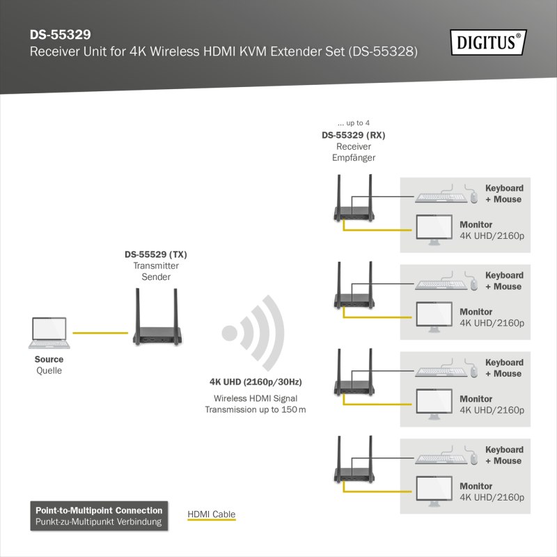Přídavná jednotka 4K Wireless HDMI Receiver (RX) pro DS-55328