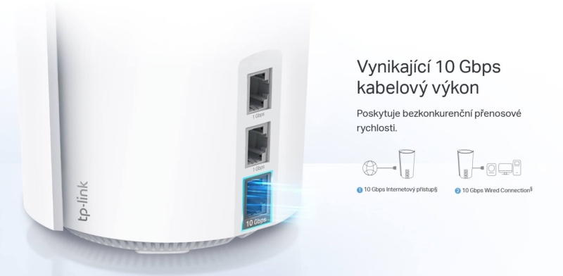 Klíčové vlastnosti Tři pásma: 4804 Mbps (5 GHz) + 4804 Mbps (6 GHz) + 1148 Mbps (2,4 GHz) Podpora 802.11a/b/g/n/ac/ax (Wi-Fi 6E), 4×4 MU-MIMO ve všech pásmech Spojení Meshových jednotek přes WiFi, případně přes ethernet Operační módy AP Router a Access Point Podpora šifrování WPA3 Podpora IPv6 (1) 100M/1G/10Gbps LAN/WAN + (2) 10/100/1000 Mbps LAN Systém Mesh s umělou inteligencí: Inteligentní analýza síťového prostředí zajistí ideální pokrytí Wi-Fi šité na míru vaší domácnosti Inteligentní antény: Silnější signál zvýší míru pokrytí a zlepší bezdrátovou konektivitu Nastavení snadné jako nikdy dříve: Aplikace Deco vás provede nastavením krok za krokem Bezproblémový roaming s jedním názvem Wi-Fi TP-Link Mesh znamená, že jednotky Deco spolupracují na vytvoření jedné jednotné sítě. Váš telefon nebo tablet se automaticky připojí k nejrychlejší jednotce Deco, když se pohybujete doma a vytváří skutečně bezproblémový Wi-Fi zážitek. Kompatibilita a snadná rozšířitelnost Veškeré jednotky Deco jsou spolu kompatibilní. V případě, že používáte více druhů jednotek, použijte jako hlavní (nejblíže internetu) tu nejlepší. Pokud potřebujete rozšířit vaši síť, jednoduše přikupte další jednotku Deco a přes aplikaci adoptujte do vaší stávající sítě. Obsah balení (2) Zařízení (2) Napájecí kabel Patch kabel Technické parametry Bezdrátové vlastnosti Bezdrátové frekvence:2.4 + 5 + 6 GHz (triple band) WiFi standardy:802.11ac, 802.11ax, 802.11n, 802.11a, 802.11b/g MU-MIMO:Ano Přenosová rychlost - 5GHz [Mb/s]:4804 Přenosová rychlost - 2.4GHz [Mb/s]:1148 Přenosová rychlost - 6GHz [Mb/s]:4804 Vysílací výkon 2.4GHz [dBm]:20 Vysílací výkon 5GHz [dBm]:23 Vysílací výkon 6GHz [dBm]:23 Šifrování:WPA, WPA2, WPA3 2.4GHz MIMO:4 x 4 5GHz MIMO:4 x 4 6GHz MIMO:4 x 4 Typ antény:Vestavěná Počet vestavěných antén:16 Roaming:Ano Konektory a rozhraní Rychlost LAN:(1) 100M/1G/10Gbps + (2) 10/100/1000Mbps Gigabit LAN:Ano Slot na SIM kartu:Ano Počet SIM slotů:1 Fyzické charakteristiky Provedení:Desktop Použití:Vnitřní Tlačítka:Reset Provozní teplota [°C]:0 až 40 Šířka [mm]:130 Výška [mm]:241 Hloubka [mm]:124 Software Operační mód:AP Router, Access Point Podpora IPv6:Ano |