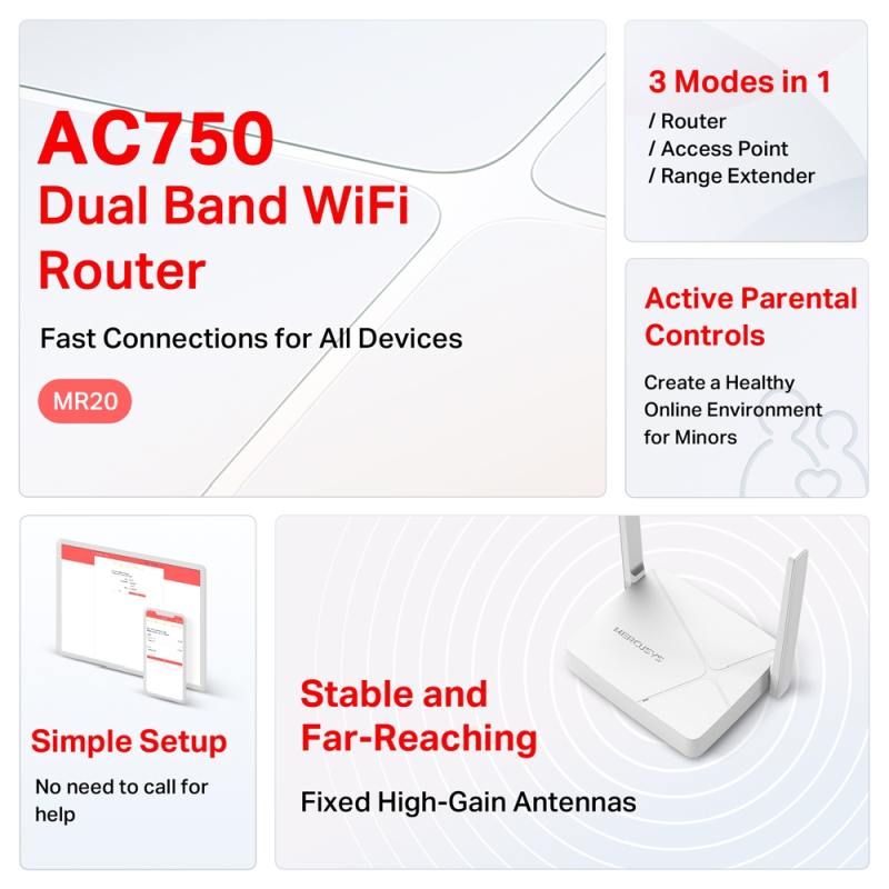 Mercusys MR20 AC750 Wireless Dual Band Router