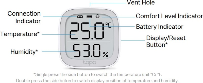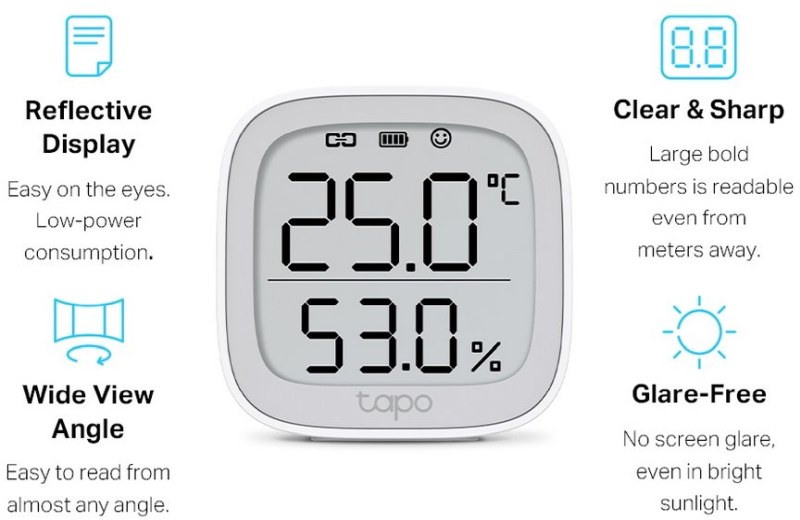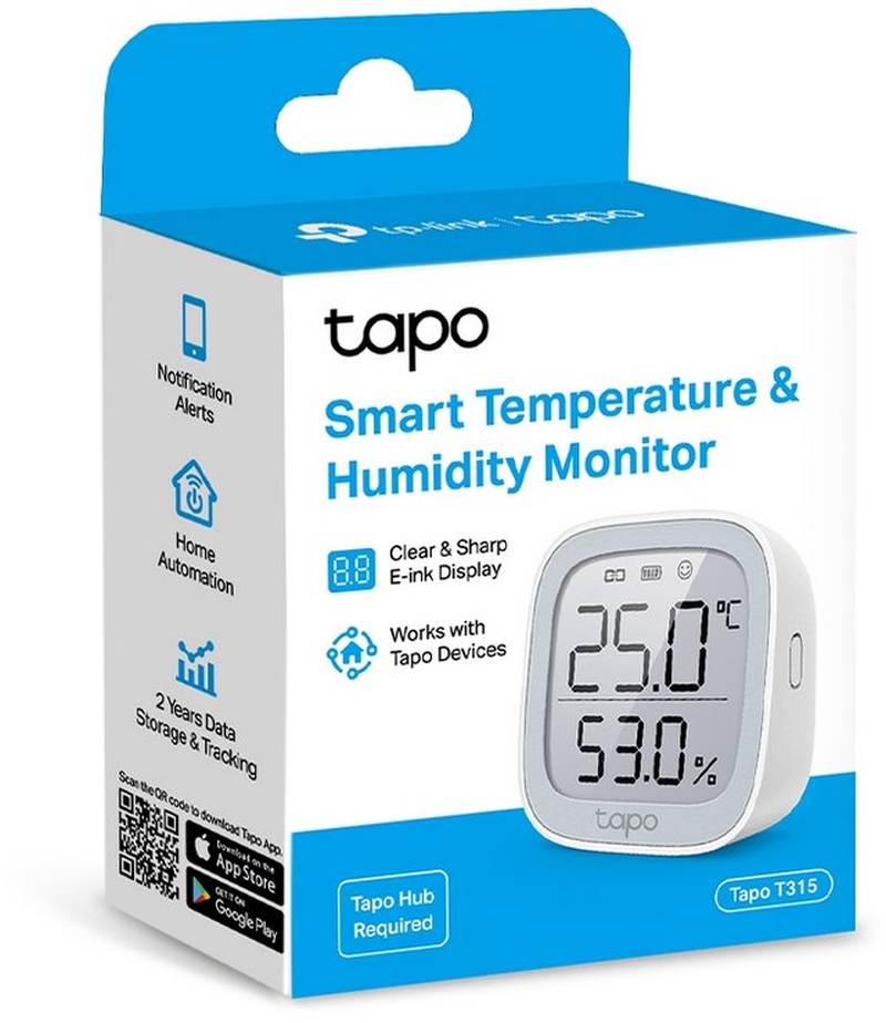 Pusuňte komfort ve vaší domácnosti a nechte automatizaci dělat věci za vás. Díky chytrému Tapo teploměru T315 vždy uvidíte aktuální teplotu i vlhkost na 2,7" LCD displeji typu E-ink. Teploměr je napájen 2× AAA/LR03 baterií s životností až 2 roky, abyste si mohli dopřát chytré bydlení bez nutnosti tahat nové kabely po domě nebo měnit současné zapojení. Teploměr komunikuje bezdrátovou frekvencí 868 MHz s ústřednou, která je nezbytná pro správnou funkčnost teploměru, měří teploty od 0 do 50°C s odchylkou max 0.3°C a vlhkost od 0 do 99% s odchylkou 3%.