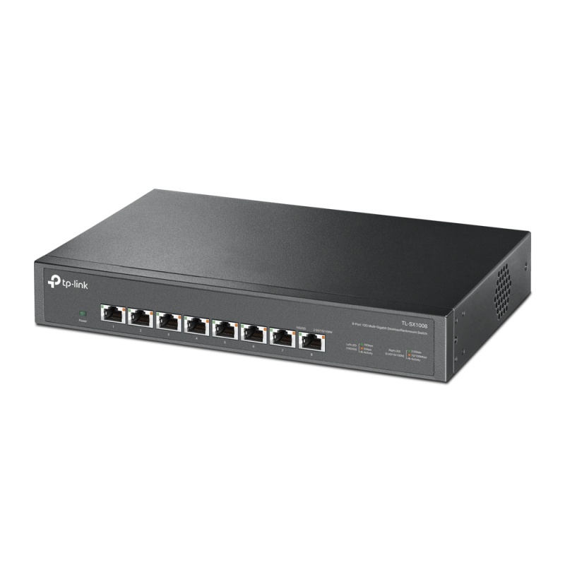 Osm portů 10 Gbit/s. Osm 10gigabitových portů umožňuje využít nejvyšší výkon 10G/multigigabitové šířky pásma a zařízení a poskytuje kapacitu přepínání až 160 Gbit/s. Bleskurychlé připojení. Zajišťuje bleskurychlé připojení k úložišti NAS 10G, serveru, síťové kartě / adaptéru PCIe 10G, hernímu počítači, přístupovému bodu 2.5G/5G/10G Wi-Fi 6, 8K videu a dalším aplikacím. Ideální pro různé situace. Navrženo pro bleskurychlé připojení ve firemních a domácích kancelářích, na pracovních stanicích, LAN party a také pro domácí zábavu. Optimální 5rychlostní připojení. Funkce automatického vyjednávání rychlostí 5rychlostního připojení (100 Mbit/s / 1G / 2.5G / 5G / 10G) nabízí optimální výkon. Tichý provoz. Inteligentní správa rychlosti ventilátoru udržuje hluk na minimu, aby zařízení během provozu uživatele nerušilo. Široký rozsah provozních teplot. Odolné kovové pouzdro a sofistikovaná konstrukce odvodu tepla zajišťují spolehlivé používání v širokém rozsahu provozních teplot (0–50 °C). Zapojení „Plug and Play“ Umožňuje snadné nasazení bez asistence technika. |