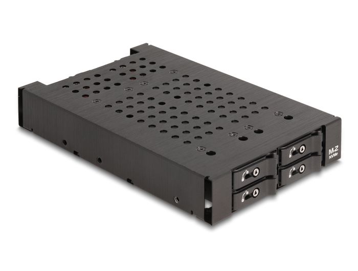 Tento pevný kovový mobilní rack značky Delock lze nainstalovat do 3.5” pozice na PC a poskytuje čtyři sloty M.2 ve formátu 2280, 2260, 2242 nebo 2230. Rychlá výměna SSD Díky speciálnímu mechanismu lze SSD rychle a snadno vyměňovat. Například lze vyndat datové zálohy a uložit je na bezpečném místě. Tác se zamykáním na klíč a s pružinami Výmenný rámeček je vybaven zámkem, aby se zabránilo neoprávněnému přístupu. Stabilní nosič z kovu má nahoře a vespod pružiny, které omezují vibrace a tím podporují jeho používání ve světě mobilních zařízení. Poznámka Je třeba obzvlášť pečlivě zajistit, aby byla disková mechanika zasunuta až na doraz, jinak nebude možné navázat spojení s SSD. Technické detaily Konektor: Mobilní rámeček: interní: 4 x M.2 klíč M slot externí: 4 x Slim SAS SFF-8654 4i samice 4 x 4 pin Floppy samec 4 x 2 pinový konektor pro ventilátoru Zásobník M.2: 1 x M.2 klíč M samec 1 x M.2 klíč M slot Kompatibilní s PCI Express V4.0 Rozhraní: PCIe / NVMe Podporuje M.2 moduly ve formátu 2280, 2260, 2242 a 2230 s klíčem M nebo klíčem B+M na základě PCIe Maximální výška komponentů na modulu: 1,5 mm je podporována aplikace oboustraných modulů 4 x LED indikující Bootovatelný, od UEFI verze 2.3.1 Kovový zásobník M.2 Podporuje NVM Express (NVMe) Podporuje S.M.A.R.T. Zámek s klíčem Rozměry (DxŠxV): cca. 159 x 100 x 25 mm Systémové požadavky Linux Kernel 6.2 nebo vyšší Windows 10/10-64/11 Windows Server 2022 PC s volnou 3.5” pozicí Jeden volný port Slim SAS SFF-8654 pro každý slot M.2 Napájecí zdroj s volným SATA napájecím konektorem Obsah balení 3.5”Mobilní rámeček s 4 x zásobník M.2 2 x kabely SATA, 15 pinové, na 2 x 4 pinové zásuvky disketové mechaniky, délka cca. 12 cm 2 x klíč 4 x šrouby I 6,0 x 5,0 mm, s hlavou 8,0 mm 4 x šrouby IM 2,0 x 4,0 mm, s hlavou 5,0 mm Uživatelská příručka Balení Box |
