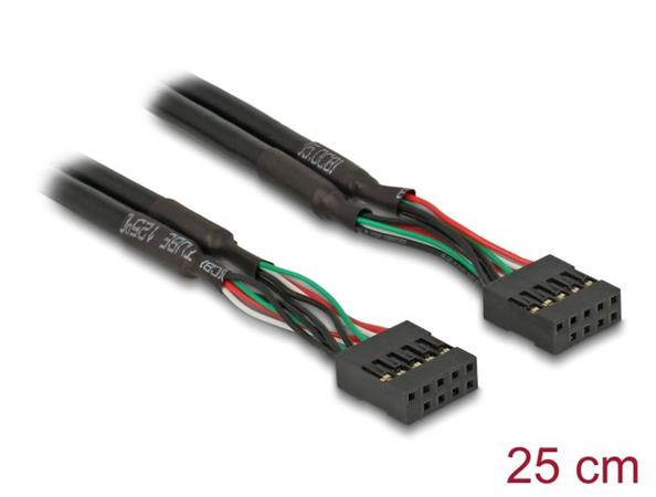 Tento kabel umožňuje připojení mezi zařízeními nebo moduly vybavenými USB pin konektory na základní desce. Technické detaily Konektor: 1 x 10 pin USB 2.0 pin konektor samice 1 x 10 pin USB 2.0 pin konektor samice Průřez kabelu: 28 AWG datové vodiče 24 AWG napájecí vodiče Průměr kabelu: cca. 4,7 mm Pin 10 = Key Pitch vdálenost: 2,54 mm Rychlost přenosu dat 480 Mbps Barva: černá Délka včetně konektorů cca. 25 cm Obsah balení USB kabel Balení Plastová taška se zipem |