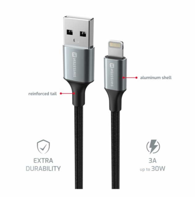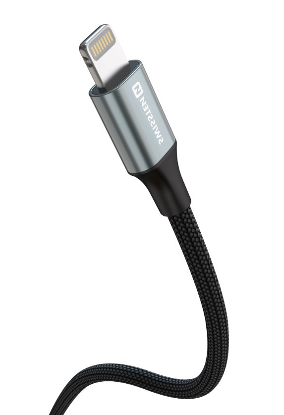 SWISSTEN DATOVÝ KABEL TEXTILE II USB / LIGHTNING 1,5 M ČERNÝ