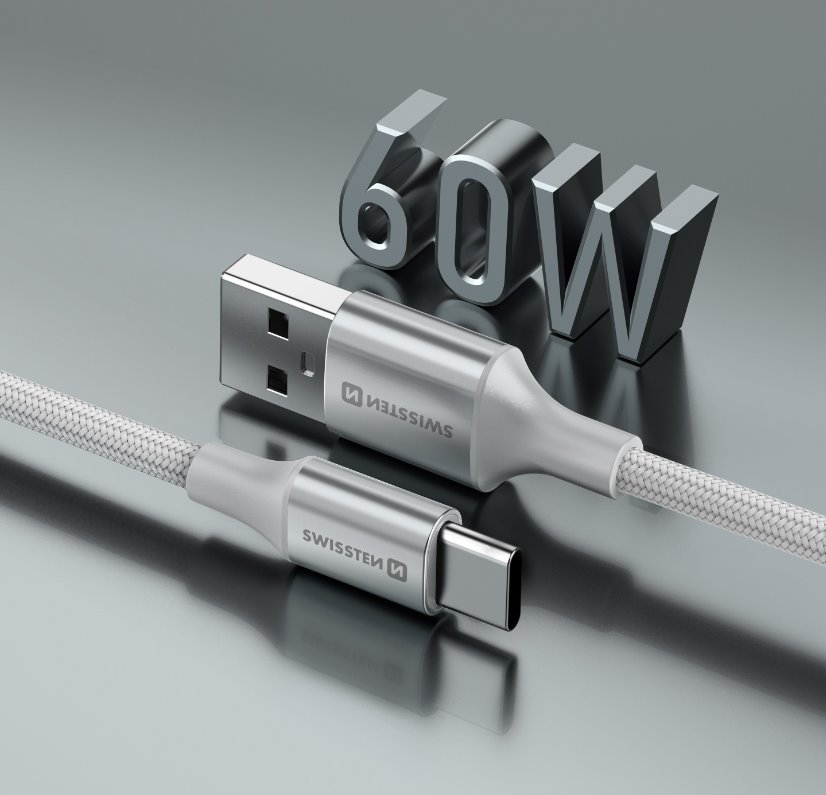 SWISSTEN DATOVÝ KABEL TEXTILE II USB / USB-C 1,5 M BÍLÝ