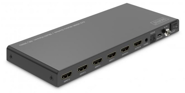 Pohodlně přepínejte mezi až 4 zdroji HDMI a 2 přehrávacími zařízeními a distribuujte svůj mediální obsah nezávisle / Multi-viewer nabízí 6 režimů pro individuální zobrazení zdrojů (rozdělená obrazovka, PIP) Přepínejte až mezi 4 HDMI zdroji a 2 přehrávacími zařízeními pomocí dálkového ovladače, přímo na zařízení nebo přes RS232 ovladač Multi-viewer: 6 režimů pro individuální zobrazení zdrojů na HDMI výstupu A (primární) nebo na HDMI výstupu A a B současně (sekundární) pomocí dálkového ovladače nebo na samotném zařízení Audio extraktor: Toslink / Stereo (3,5 mm) - Oddělení / oddělená reprodukce audio signálu Max. rozlišení: 4K/30 Hz Ovládání RS232 přes micro USB Scaler (přepínač) - Nastavení rozlišení HDMI výstupu (1080p, 1600p, 4K/30Hz) Samostatný vypínač Šířka pásma videa: 10,2 Gbps HDCP 1.4 Rozhraní HDMI 1.4 Popis Maticový přepínač HDMI DIGITUS® 4x2 / Quad Multi-Viewer vám umožní pohodlně přepínat mezi až 4 zdroji HDMI a 2 přehrávacími zařízeními a nezávisle distribuovat váš mediální obsah. Přepínejte pohodlně mezi zdroji signálu pomocí dálkového ovladače, přímo na zařízení nebo pomocí ovládání RS232. Funkce multi-viewer nabízí 6 režimů pro individuální zobrazení zdrojů (split-screen, PIP) na výstupu A nebo paralelně na A & B. Audio signály lze také oddělit a odděleně reprodukovat přes Toslink nebo 3,5 mm stereo připojení. Podporuje rozlišení až 4K/30Hz. Rozlišení výstupu HDMI lze individuálně upravit pomocí scaleru. Technické detaily Přepínejte až mezi 4 HDMI zdroji a 2 přehrávacími zařízeními pomocí dálkového ovladače, přímo na zařízení nebo přes RS232 ovladač Multi-viewer: 6 režimů pro individuální zobrazení zdrojů na HDMI výstupu A (primární) nebo na HDMI výstupu A a B současně (sekundární) pomocí dálkového ovladače nebo na samotném zařízení Audio extraktor: Toslink / Stereo (3,5 mm) - Oddělení / oddělená reprodukce audio signálu Max. rozlišení: 4K/30 Hz Ovládání RS232 přes micro USB Scaler (přepínač) - Nastavení rozlišení HDMI výstupu (1080p, 1600p, 4K/30Hz) Samostatný vypínač Šířka pásma videa: 10,2 Gbps HDCP 1.4 Rozhraní HDMI 1.4 Konexe: 4x HDMI vstup (4K/30Hz) 2x HDMI výstup (4K/30Hz) 1x Toslink 1x 3,5 mm audio 1x Micro USB vstup - RS232 ovládání / servis, aktualizace vzdálené údržby 1x DC jack se šroubovacím konektorem 5V/1A (napájení) - Připojení napájecího adaptéru 9x stavové LED diody 1 x IR přijímač 5x přepínací spínač 1x vypínač Provozní teplota: 0-70° Spotřeba energie: cca. 5W Pouzdro: kov Rozměry (pouzdro): D 21,4 x Š 9,1 x V 1,85 cm Hmotnost: 450 g Barva: černá HDTV rozlišení max.: 3840 x 2160 pixelů, 30Hz HDTV standard: Ultra HD 4K Počet vstupních portů: 4 Počet výstupních portů: 2 Vstup signálu: HDMI Výstup signálu: HDMI Porty pro připojení videa: HDMI |