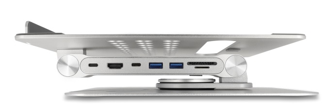 Tento stojan na tablety a laptopy s dokovací stanicí značky Delock je přesvědčivý nejen svou konstrukcí, ale i stabilitou a funkcí. Díky nastavitelnému úhlu lze tablet nebo laptop uvést do jakékoli možné polohy a stojí stabilně. Gumové podložky připevněné na spodní straně a v držáku zajišťují, aby ani zařízení, ani držák neklouzali. Dokovací stanice Dokovací stanici lze připojit k mobilnímu zařízení s portem USB-C™ DP Alt Mode, Thunderbolt™ 3 nebo Thunderbolt™ 4 a poskytuje více různých rozhraní. Na výstupu rozhraní HDMI lze provozovat monitor s maximálním rozlišením až 4K, 60 Hz. Podpora napájení USB Power Delivery (USB PD 3.0) s výkonem až 90 W Dokovací stanice má napájecí port USB Type-C™ Power Delivery. Při připojení tohoto portu k napájecímu přívodu laptopu nebo tabletu bude hostitelské zařízení nabíjeno za provozu výkonem až 85 W. Technické detaily Držák Materiál: hliník Rozměry (DxŠxV): stojan: cca. 20,0 x 20,0 x 0,3 cm držák: cca. 24,9 x 21,0 x 0,3 cm složeno: cca. 24,9 x 21,0 x 5,1 cm Váha: cca. 1,24 kg Pro laptopy a tablety do rozměru až 15,6” Dokovací stanice Konektor: 1 x USB 5 Gbps USB Type-C™ samice (host) 1 x USB 10 Gbps USB Type-C™ samice (PD) 1 x USB 5 Gbps USB Type-C™ samice 2 x USB 5 Gbps Typ-A samice 1 x HDMI samice 1 x SD slot 1 x Micro SD slot Výstupní výkon: 1 x USB Type-C™ samice max. 90 W Rozlišení až 3840 x 2160 @ 60 Hz (v závislosti na systému a připojeném hardware) Přenos audio a video signálu Vstupní výkon: 100 W, 10 W využívá dokovací stanice Výstupní výkon pro hostitele: max. 90 W Může být použita pouze jedna paměťová karta, nikolim obě současně Podporuje HDCP Podporuje Samsung DeX Kovová skříňka Barva: stříbrná Systémové požadavky Android 13.0 nebo vyšší Chrome OS iPad Air (4-mé generace) nebo vyšší Linux Kernel 6.2 nebo vyšší Mac OS 13.1 nebo vyšší Windows 10/10-64/11 Zařízení s volným portem USB Type-C™ a alternativním režimem DisplayPort nebo s volným portem Thunderbolt™ 3 nebo Thunderbolt™ 4 Obsah balení Stojan s dokovací stanicí Kabel USB Type-C™ na USB Type-C™, délka ca. 40 cm Uživatelská příručka Balení Kartonová krabice |