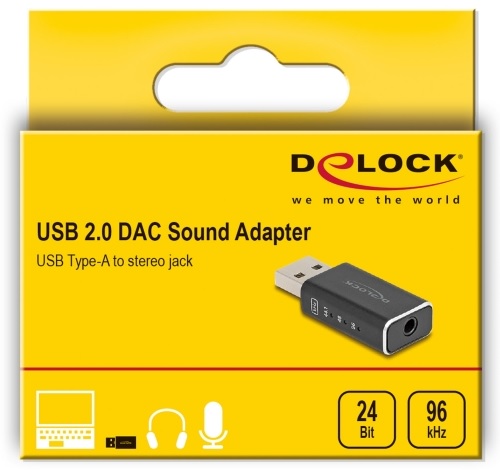 Herní USB DAC značky Delock je kompaktní a přenosný digitálně analogový převodník (DAC), který významně zlepšuje zvukový prožitek z herních náhlavních sad a sluchátek. Zvuk s vysokým rozlišením Zvukový adaptér podporuje audio formáty s vysokým rozlišením, až 24 bitů / 96 kHz, takže podává krystalicky čistou reprodukci zvuku s pozoruhodnými detaily. Bezproblémová kompatibilita Herní DAC lze používat s širokou škálou audio zařízení, jako jsou například herní náhlavní sady, sluchátka a externí reproduktory. Kompaktní konstrukce Kompaktní konstrukce Gaming DAC jej činí ideálním řešením pro mobilní hráče a nadšence pro zvuk. Snadno jej lze přenášet v batohu nebo v příručním zavazadle, takže vysoce kvalitní reprodukovaný zvuk si užijete i na cestách. Plug & Play Díky USB Plug & Play je adaptér okamžitě připravený k použití a není potřeba instalovat žádné ovladače. Adaptér funguje se všemi běžnými operačními systémy, jako jsou Windows, Mac OS, Chrome OS, Linux a Android. Technické detaily Konektor: 1 x USB 2.0 Typ-A samec 1 x 3,5 mm 4 pin stereo jack samice (CTIA standard) Chipset: KT02F20 + MAX97220A Podporuje vzorkovací frekvenci: 44,1 / 48 / 96 kHz (v závislosti na systému a připojených zařízení) LED indicator pro vzorkovací frekvence USB Audio specifikace 1.0 Vzorkovací frekvence 24 bitů / 96 kHz pro přehrávání a 24 bitů / 48 kHz k nahrávání Poměr signálu a šumu (SNR): ca. 103 dB Frekvenční odezva: 20 Hz - 20 kHz +/- 0,5 dB Celkové harmonické zkreslení + šum (THD+N): 0,003 % @ 1 mW Headphone-Drive schopnost: 16 - 300 Ohm USB Bus power Plug & Play Rozměry (DxŠxV): cca. 41,8 x 17,2 x 9,8 mm Systémové požadavky Android 13.0 nebo vyšší Chrome OS 116.0 nebo vyšší Linux Kernel 6.2 nebo vyšší Mac OS 13.1 nebo vyšší Windows 10/10-64/11 iPad Air (4-mé generace) nebo vyšší PC nebo notebook s volným USB Typ-A portem Obsah balení USB zvukový adaptér Uživatelská příručka Balení Kartonová krabice |