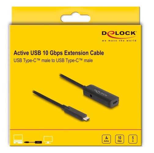 Tento aktivní USB kabel Delock lze použít k prodloužení připojení USB o 5 m. Kabel má další napájecí zástrčku na stejnosměrný proud, ke které lze připojit případný další zdroj proudu. Tím bude zajištěn optimální přenos dat i při použití s výkonnými zařízeními, jako je pevný disk na 2.5”. Poznámka Kabel nemůže přenášet videosignály, proto není vhodný k připojení monitoru USB Type-C™. Technické detaily Konektor: 1 x USB 10 Gbps USB Type-C™ samec 1 x USB 10 Gbps USB Type-C™ samice 1 x DC jack Chipset: Prolific PL2586 DC jack pro volitelné napájení Průřez kabelu: 30 AWG datové vodiče 24 AWG napájecí vodiče Průměr kabelu: cca. 4,8 mm Rychlost přenosu dat 10 Gbps Výstupní proud: 1,5 A bez napájení 2 A s napájecím Výstupní napětí: 5 V Barva: černá Rozměry krytu (DxŠxV): cca. 62,1 x 23,1 x 11,5 mm Délka bez konektorů: cca. 5 m Specifikace napájecího konektoru Vstup: 5 V / 2 A Zem vně, plus uvnitř Rozměry: vnitřní: o cca. 1,35 mm venkovní: o cca. 3,5 mm délka: cca. 9,65 mm Obsah balení USB prodlužovací kabel Balení Kartonová krabice |