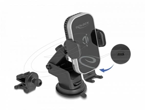 S tímto držákem značky Delock s certifikací Qi lze v autě snadno bezdrátově nabíjet mobilní zařízení. Díky přenosu energie indukcí už nejsou potřeba nabíjecí kabely a konektory jsou chráněny. U vhodně vybavených chytrých telefonů nabíječka podporuje rychlonabíjení výkonem až 15 W.