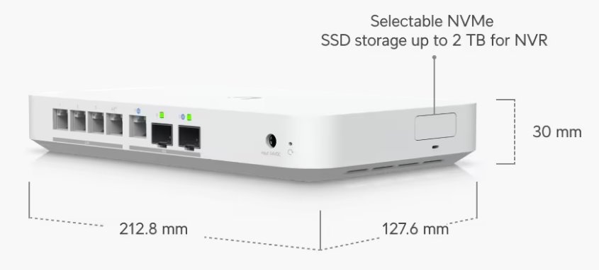 Pomocí integrované aplikace UniFi Network dokážete spravovat až 50+ UniFi zařízení a obsloužit až 500+ připojených klientských zařízení. Pro ukládání video záznamu z kamer je možné router doplnit o NVMe SSD až do velikosti 2TB díky připravenému slotu. Nechybí stavový displej o velikosti 0,96". Napájení je řešeno prostřednictvím napájecího adaptéru 54V/1,1A, napájecí adaptér je součástí balení. Klíčové vlastnosti 5Gbps routing s podporou IDS/IPS Podporované UniFi aplikace: Network, Protect, Access, Talk, Connect Multi-WAN + load balancing 0,96" LCM displej Obsah balení Zařízení Patch kabel Napájecí adaptér 54V/1,1A Konektory a rozhraní Rychlosti WAN:(1) 1/2.5/10Gbps + (1) 10Gbps SFP+ Možnost více WAN:Ano Rychlost LAN:(4) 10/100/1000/2500Mbps Gigabit LAN:Ano Optické rozhraní:(2) 10Gbps Napájení Typ napájení:DC konektor Typy PoE:PoE-Out (pouze) Podporované PoE-Out standardy:802.3af, 802.3at Počet PoE Out portů:1 Max. spotřeba energie [W]:29 Napájení přes konektor/svorkovnici:54V / 1,1A Fyzické charakteristiky Provedení:Desktop Šasi:Plastové Tlačítka:Reset Provozní teplota [°C]:0 až 40 Hmotnost [g]:680 Šířka [mm]:213 Výška [mm]:30 Hloubka [mm]:128 Hardware CPU:ARM Cortex-A73 Frekvence CPU [MHz]:2200 Počet CPU jader:4 Software Podporované VPN:L2TP, IPSec, OpenVPN, WireGuard Předinstalovaný kontroller:UniFi Network, UniFi Protect, UniFi Talk, UniFi Access, UniFi Connect Management:UniFi Network Podpora IPv6:Ano |