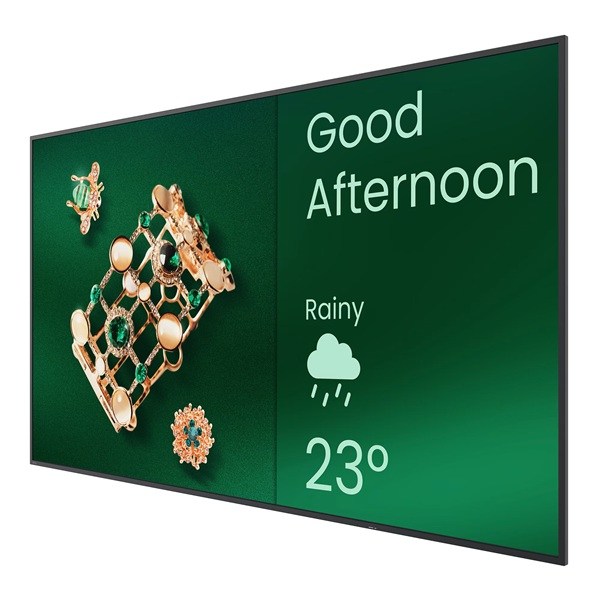 Velikost obrazovky 55'' Typ panelu REKLAMY Aktivní oblast 1209,6 × 680,4 mm Poměr stran 16:9 Rezoluce UHD 3840 × 2160 pixelů Doba odezvy 8 ms Barevná hloubka 10bitový Orientace Krajina a portrét Provozní doba 18 hodin / 7 dní Jas panelu (typický) 350 nitů Kontrastní poměr (typický) 1200:1 Barevný gamut CIE 1976: 99 % sRGB, 72 % NTSC Životnost podsvícení (typická) 30 000 hodin Systém Paměť | Úložiště 4 GB a 32 GB OS Android 14.0 Grafický procesor G52 MC1 Procesor A73 × 4 Konektivita HDMI (vstup | výstup) 2 × HDMI 2.0 | Ne USB-A 2 × 2,0 3,5mm linkový výstup Sluchátko × 1 Ethernet 10 / 100 Mb/s (Android) × 1 RS-232 1 | 0 Vestavěné periferie IR senzor Ano Reproduktor 2 × 12 W Energie ENERGY STAR® Ano AC 100-240V 50/60Hz Spotřeba energie v pohotovostním režimu <0,5 W Typická spotřeba energie 71 Z Fyzikální vlastnosti Rozměry (Š x V x H) 1234,2 × 706,7 × 58,9 mm (48,6 × 27,8 × 2,3 palce) Rozměry pro přepravu (Š x V x H) 1386 × 845 × 140 mm (54,6 × 33,3 × 5,5 palce) Hmotnost (produkt I doprava) 14,7 kg | 19,9 kg (32,4 liber | 43,9 liber) Upevnění (šrouby) VESA 400 × 200 mm (4 × M6 × 15L) Prostředí Provozní teplota 0°C ~ 40°C | 32°F ~ 104°F Skladovací teplota -10 °C ~ 60 °C | 14 °F ~ 140 °F Skladovací vlhkost 10 % ~ 80 % relativní vlhkosti bez kondenzace Provozní vlhkost 10 % ~ 80 % relativní vlhkosti bez kondenzace Software Bezdrátové sdílení obrazovky InstaShare 2 Správa zařízení DMS Vysílací systém Znamení X Příslušenství Kabely 1 × HDMI (1,5 m), 1 × RS232 (1,8 m) Dálkové ovládání 1 |