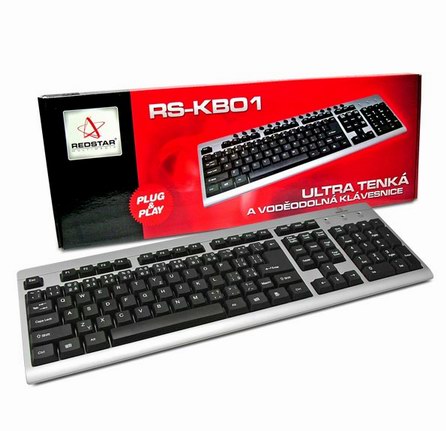 Název: REDSTAR RS-KB01S Popis: Ultratenká, voděodolná, PS/2 klávesnice v černo-stříbrné barvě. CZ layout |