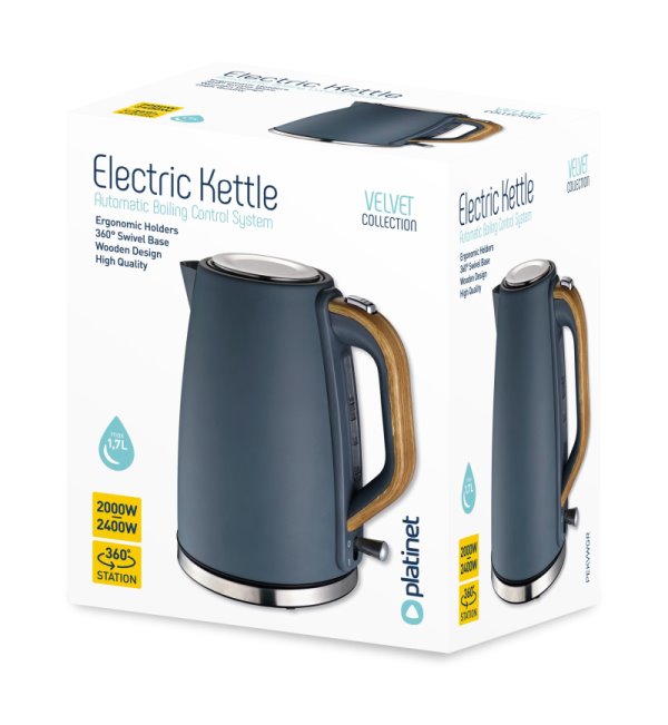Stylový a elegantní design varných konvic Velvet změní interiér vaší kuchyně a poskytne nejvyšší kvalitu a funkčnost zároveň! EFEKTIVITA Díky vysokému výkonu až 2400 W konvice zkracuje dobu varu vody, což vám šetří čas i peníze. Vysoký výkon konvice zaručuje rychlejší vaření vody a nižší spotřebu energie. KAPACITA Prostorná konvice je ideální pro větší rodinu - díky objemu 1,7 l snadno uvaří vodu pro všechny členy rodiny zároveň. POHODLÍ Pohodlí při používání přístroje je zvýšeno díky otočné základně - konvici na ni můžete postavit v jakékoli poloze. ŘÍZENÍ Ukazatel hladiny vody vám pomůže rychle zkontrolovat množství vody v konvici bez otevření víka. BEZPEČNOST Použití automatického vypínacího senzoru umožňuje konvici přestat vařit vodu, když dosáhne správné teploty, takže se nemusíte bát, že by se voda vyvařila, pokud zapomenete konvici ručně vypnout. ČISTOTA Filtr proti vodnímu kameni zabraňuje vnikání vodního kamene do sklenice, což vám umožní vychutnat si opravdu čistou vodu PARAMETRY PRODUKTU Kapacita: 1,7 l Výkon zařízení: 50/60 Hz 2000-2400 W Napětí: 220-240V Materiál: tělo z nerezové oceli s šedým povlakem a dřevěnou rukojetí Typ zástrčky: Standardní VDE Délka kabelu: 75 cm |