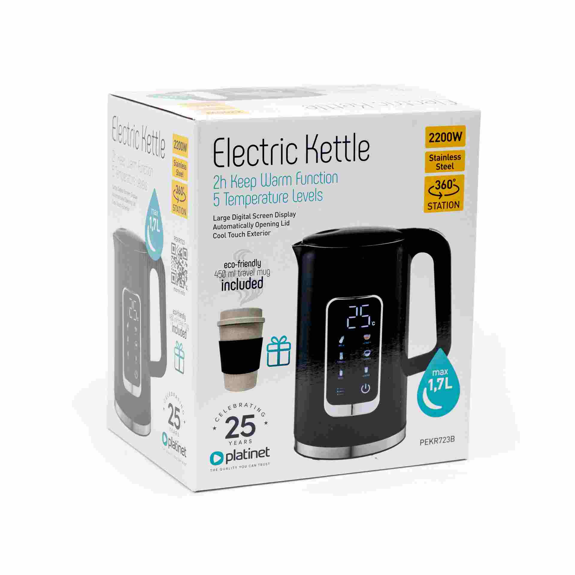 "Rychlovarná konvice vyrobená z vysoce kvalitních materiálů zajišťuje odolnost a snadné čištění. Zapomeňte na náhodné ohřívání rukojeti levných a nekvalitních konvic – naše konvice má pouzdro, které se nezahřívá, což zvyšuje bezpečnost používání. Díky přehlednému digitálnímu displeji a pěti úrovním teploty, můžete přesně přizpůsobit teplotu vybranému nápoji. Funkce udržování teploty vám umožní vychutnat si horký nápoj i po dlouhé době.